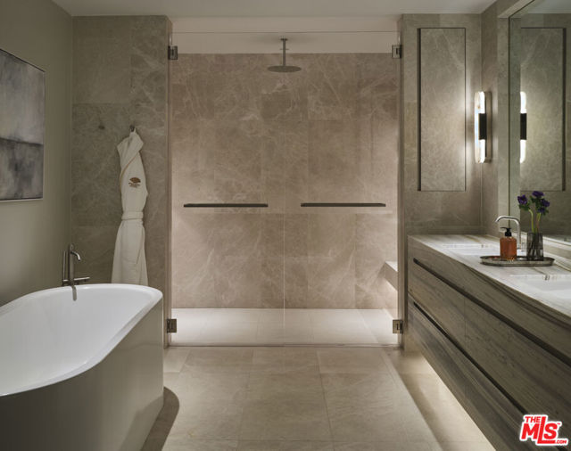 A harmonious blend of privacy and indulgence, Mandarin Oriental Residences, Beverly Hills offers the intimacy of a private home enhanced by the legendary service of a five-star hotel. Designed in collaboration with internationally acclaimed 1508 London, each residence is a master class in refinement, where daily rituals are elevated into moments of quiet luxury. The rooftop is a sanctuary unto itself, with sweeping views of Beverly Hills' iconic palm-lined streets. Surrounded by citrus trees and fragrant plantings of lavender, rosemary and sage the rooftop oasis features a heated pool, towel service, and serene lounge areas infused with calming natural scents. Wellness offerings continue with an impeccable spa suite featuring private treatment rooms, a steam room and sauna, and a state-of-the-art fitness center with Technogym equipment, private ballet/yoga room, and a sunlit outdoor terrace overlooking Century City and the pool. On the ground level, residents enjoy access to a private boardroom and cozy fireplace lounge, perfect for entertaining or working from home in style. Around-the-clock valet, concierge, and residence services ensure every detail is handled with signature Mandarin Oriental grace and discretion. Residence 201E is offered at $3,750,000 and features a gracious two-bedroom layout with tranquil northwest exposures. A formal entry leads into a loft-like Great Room that flows effortlessly to a private treetop terrace. The open chef's kitchen is anchored by a leathered Taj Mahal quartzite peninsula, perfect for casual dining or entertaining. The en-suite guest bedroom overlooks the lushly landscaped Palm Court, while the serene primary suite offers a generous walk-in closet and five-fixture bath designed for total relaxation. Previously offered at $5,175,000, this residence presents an outstanding opportunity at a refreshing new price.