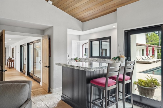 Welcome to 2718 Via Victoria, a beautifully updated modern Spanish-style residence tucked on a quiet cul-de-sac in the highly sought-after Upper Lunada Bay of Palos Verdes Estates. Set on a flat and fully usable 16,777 sq ft lot, this expansive 7-bedroom home spans 5,434 sq ft and offers the perfect blend of luxury, comfort, and functionality with picturesque views of the canyon and ocean. Thoughtfully remodeled throughout, the home features high-end finishes and top-of-the-line appliances. The main level offers a flexible and open layout with a formal living room, two spacious dens, a dining area, three fireplaces, and a stunning chef’s kitchen that flows seamlessly into the family room—ideal for entertaining or multi-generational living. A newly added bourbon bar area with two Thermador wine fridges enhances the space for gatherings and celebrations. The kitchen is a showstopper with a Mont Blanc quartzite island, Sub-Zero fridge/freezer, 6-burner Wolf range with double oven, Viking dishwasher, and built-in microwave. The first floor also includes two bedrooms, two and a half baths, and a large laundry room. Nearly every room opens to the lush backyard or offers canyon and ocean views. Upstairs, you’ll find five additional bedrooms, including two Jack & Jill suites. The spacious primary suite captures beautiful ocean views and features a luxurious en-suite bathroom. With seven total bedrooms, this home offers excellent flexibility—whether you need space for a home office, gym, playroom, or guest quarters. The backyard is a private retreat, complete with a saltwater pool, oversized spa, multiple seating and lounge areas, a beautifully tiled outdoor shower, Built-in BBQ, and a large grassy lawn perfect for play and entertaining. Additional highlights include whole house water softener, Anderson Windows, an attached 2-car garage, extended driveway with parking for 4+ cars, a workshop, garden area, dual-zoned air conditioning, and a charming front porch for enjoying coastal sunsets. All of this is just moments from top-rated Palos Verdes schools, local amenities, restaurants, libraries, golf clubs, scenic hiking trails, the coastline and the 110 freeway. This is a rare opportunity to own a truly exceptional home in one of the South Bay’s most prestigious neighborhoods.